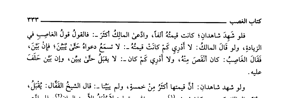 فلو شهد شاهدان؛ كانت قيمته ألفاً، وادعى المالك أكثر: فالقول قول الغاصب في الزيادة، ولو قال المالك: لا أدري كم كانت قيمته: لا تسمع دعواه حتى يبين؛ فإن بين، فقال الغاصب: كان أنقص منه، ولا أدري كم كان: لا يقبل حتى يبين، وإن بين حلف عليه.