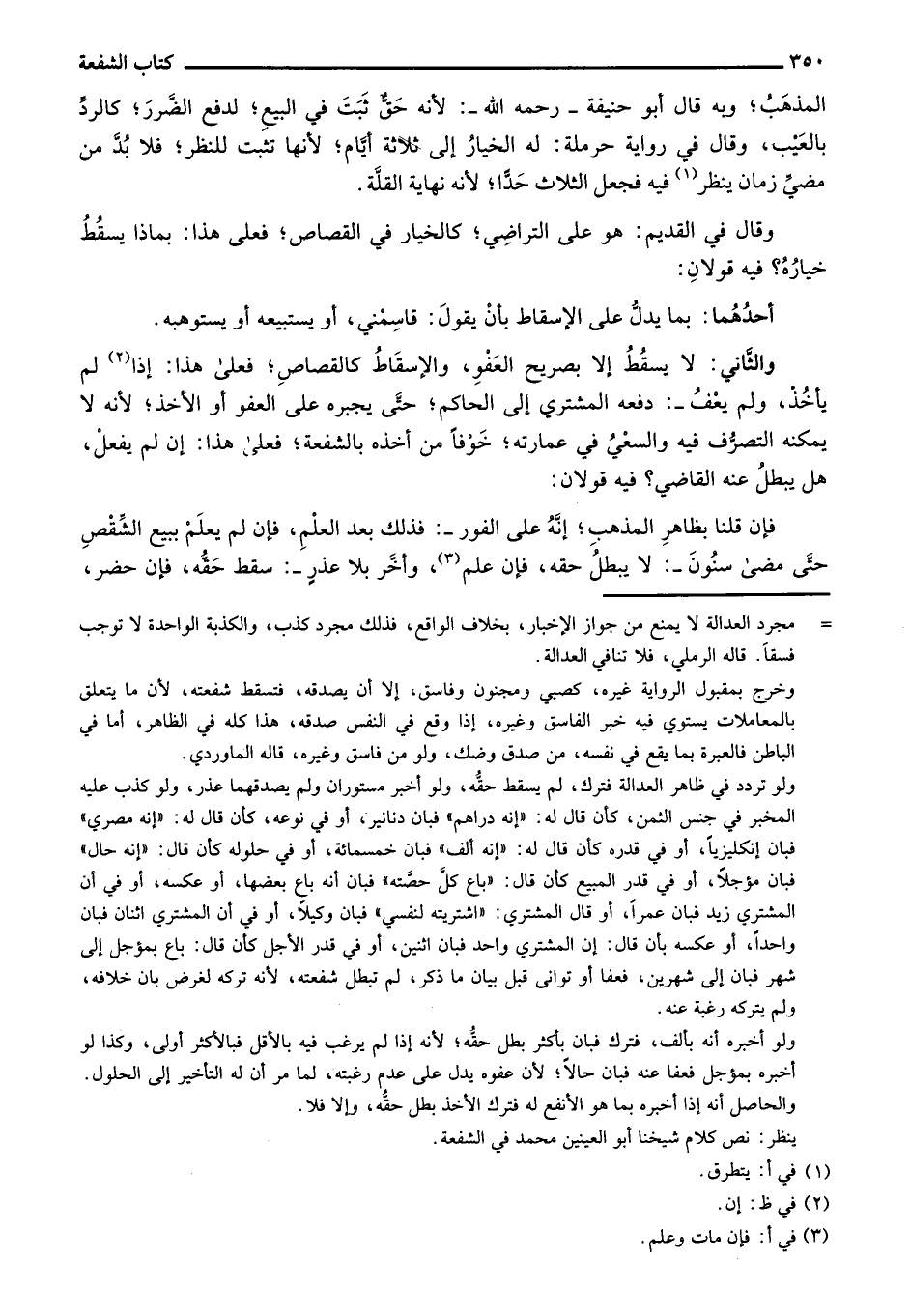 والثاني: لا يسقط إلا بصريح العفو، والإسقاط كالقصاص؛ فعلى هذا: إذا لم يأخذ، ولم يعف: دفعه المشتري إلى الحاكم؛ حتى يجبره على العفو أو الأخذ؛ لأنه لا يمكنه التصرف فيه والسعي في عمارته؛ خوفاً من أخذه بالشفعة؛ فعلى هذا: إن لم يفعل؛ هل يبطل عنه القاضي؟ فيه قولان: