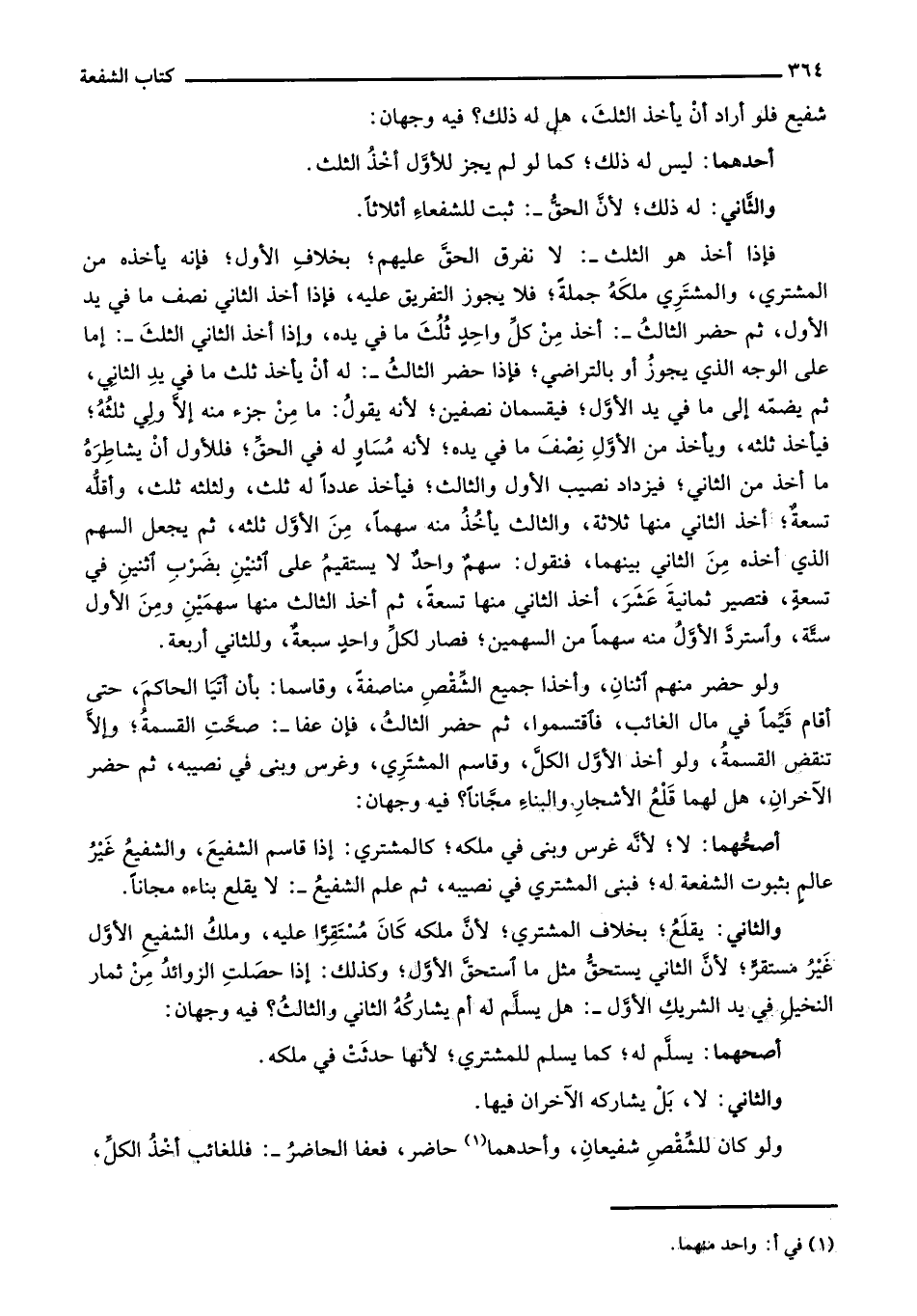 شفيع فلو أراد أن يأخذ الثلث، هل له ذلك؟ فيه وجهان:
