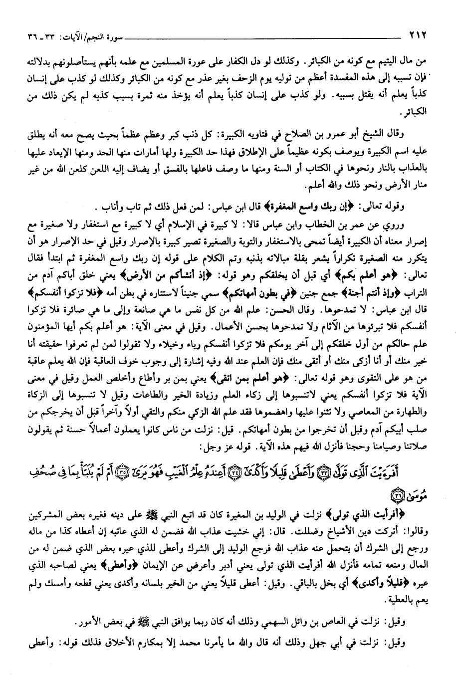 أَفَرَأَيْتَ الَّذِي تَوَلَّى (33) وَأَعْطى قَلِيلاً وَأَكْدى (34) أَعِنْدَهُ عِلْمُ الْغَيْبِ فَهُوَ يَرى (35) أَمْ لَمْ يُنَبَّأْ بِما فِي صُحُفِ مُوسى (36)