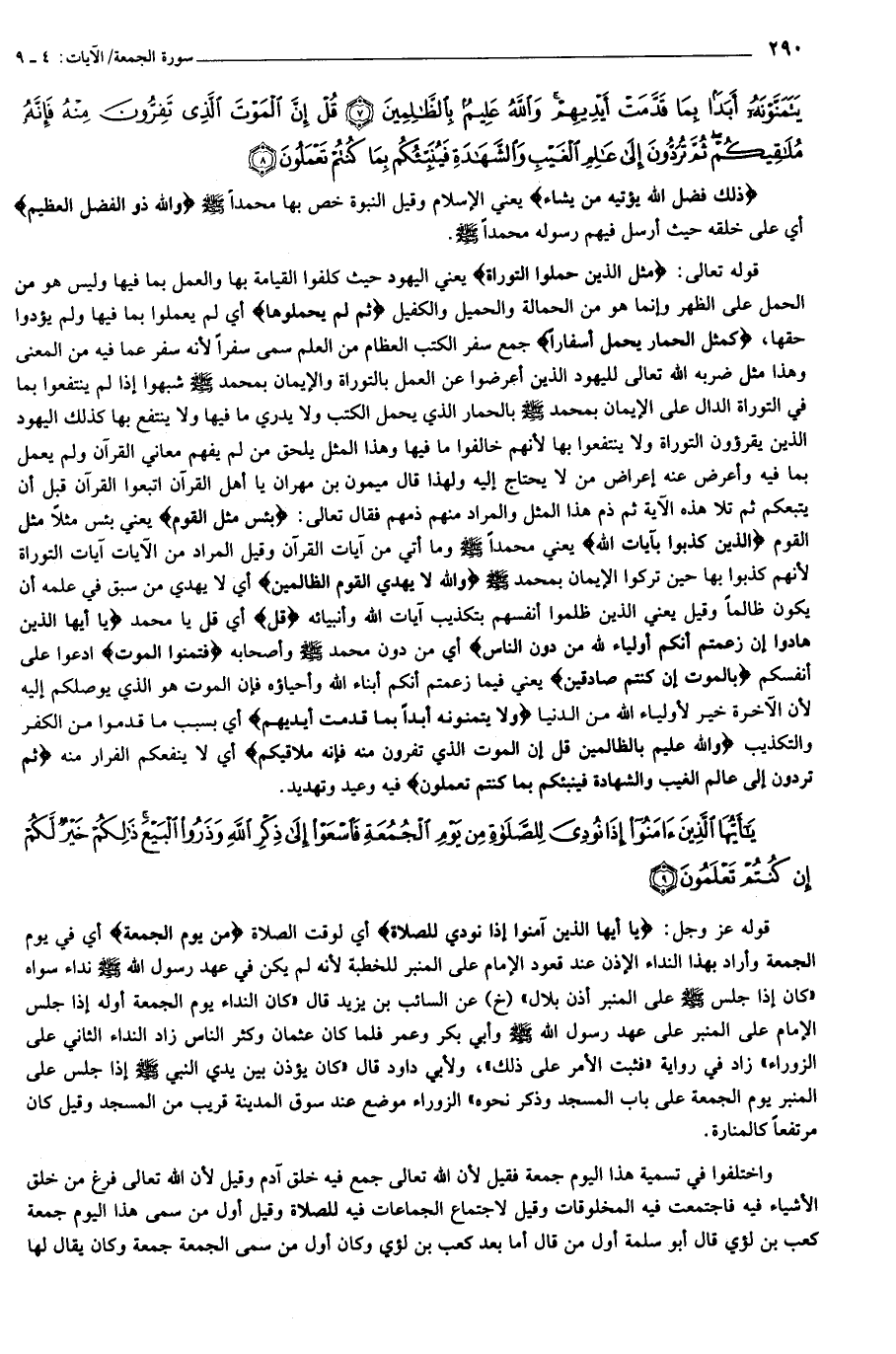 ذلِكَ فَضْلُ اللَّهِ يُؤْتِيهِ مَنْ يَشاءُ وَاللَّهُ ذُو الْفَضْلِ الْعَظِيمِ (4) مَثَلُ الَّذِينَ حُمِّلُوا التَّوْراةَ ثُمَّ لَمْ يَحْمِلُوها كَمَثَلِ الْحِمارِ يَحْمِلُ أَسْفاراً بِئْسَ مَثَلُ الْقَوْمِ الَّذِينَ كَذَّبُوا بِآياتِ اللَّهِ وَاللَّهُ لا يَهْدِي الْقَوْمَ الظَّالِمِينَ (5) قُلْ يا أَيُّهَا الَّذِينَ هادُوا إِنْ زَعَمْتُمْ أَنَّكُمْ أَوْلِياءُ لِلَّهِ مِنْ دُونِ النَّاسِ فَتَمَنَّوُا الْمَوْتَ إِنْ كُنْتُمْ صادِقِينَ (6) وَلا يَتَمَنَّوْنَهُ أَبَداً بِما قَدَّمَتْ أَيْدِيهِمْ وَاللَّهُ عَلِيمٌ بِالظَّالِمِينَ (7) قُلْ إِنَّ الْمَوْتَ الَّذِي تَفِرُّونَ مِنْهُ فَإِنَّهُ مُلاقِيكُمْ ثُمَّ تُرَدُّونَ إِلى عالِمِ الْغَيْبِ وَالشَّهادَةِ فَيُنَبِّئُكُمْ بِما كُنْتُمْ تَعْمَلُونَ (8)