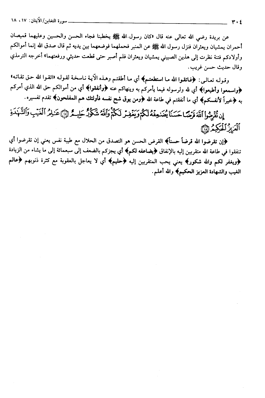 إِنْ تُقْرِضُوا اللَّهَ قَرْضاً حَسَناً يُضاعِفْهُ لَكُمْ وَيَغْفِرْ لَكُمْ وَاللَّهُ شَكُورٌ حَلِيمٌ (17) عالِمُ الْغَيْبِ وَالشَّهادَةِ الْعَزِيزُ الْحَكِيمُ (18)