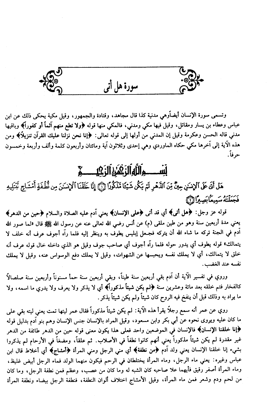 هَلْ أَتى عَلَى الْإِنْسانِ حِينٌ مِنَ الدَّهْرِ لَمْ يَكُنْ شَيْئاً مَذْكُوراً (1) إِنَّا خَلَقْنَا الْإِنْسانَ مِنْ نُطْفَةٍ أَمْشاجٍ نَبْتَلِيهِ فَجَعَلْناهُ سَمِيعاً بَصِيراً (2)
