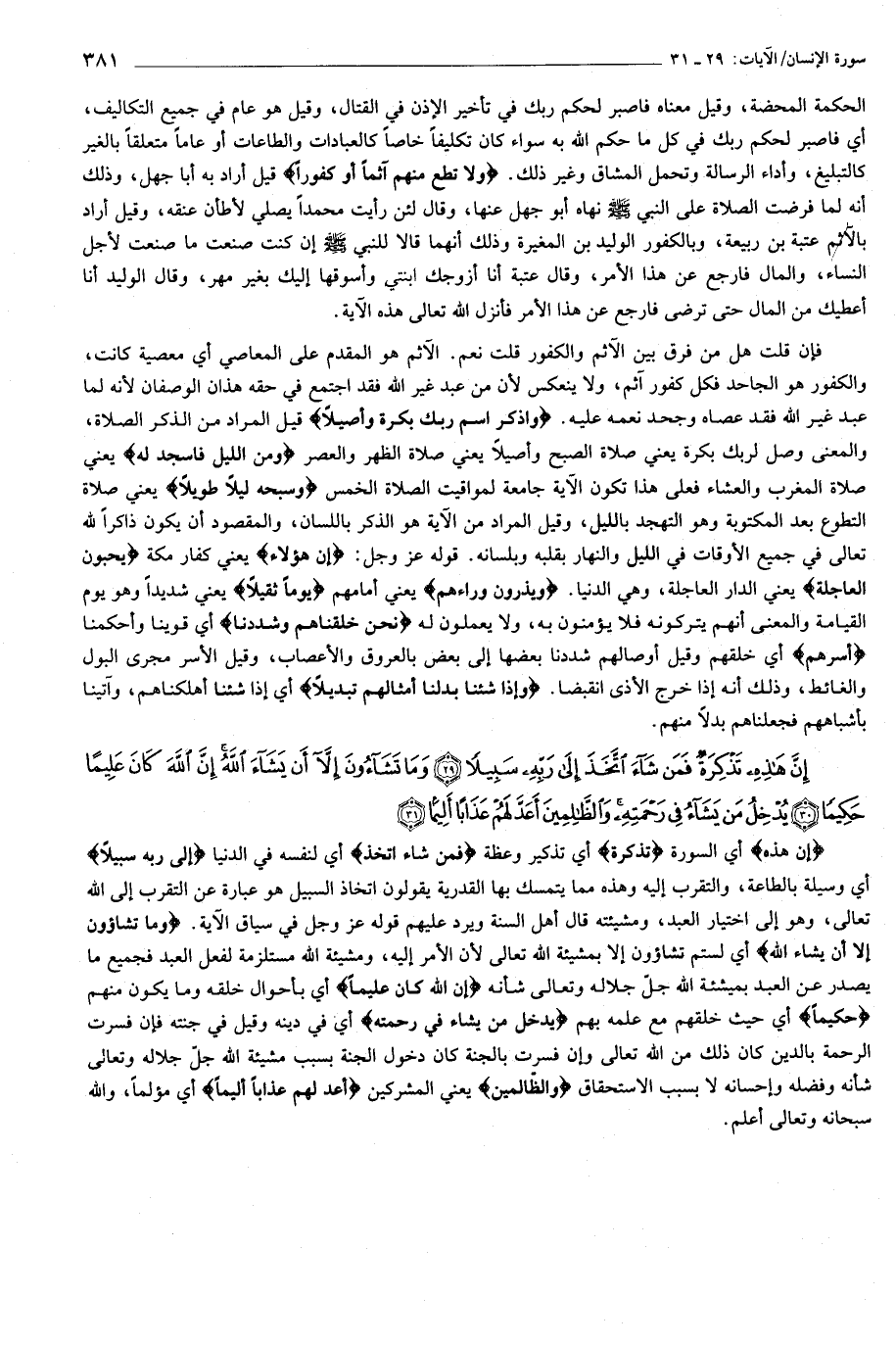 إِنَّ هذِهِ تَذْكِرَةٌ فَمَنْ شاءَ اتَّخَذَ إِلى رَبِّهِ سَبِيلاً (29) وَما تَشاؤُنَ إِلاَّ أَنْ يَشاءَ اللَّهُ إِنَّ اللَّهَ كانَ عَلِيماً حَكِيماً (30) يُدْخِلُ مَنْ يَشاءُ فِي رَحْمَتِهِ وَالظَّالِمِينَ أَعَدَّ لَهُمْ عَذاباً أَلِيماً (31)