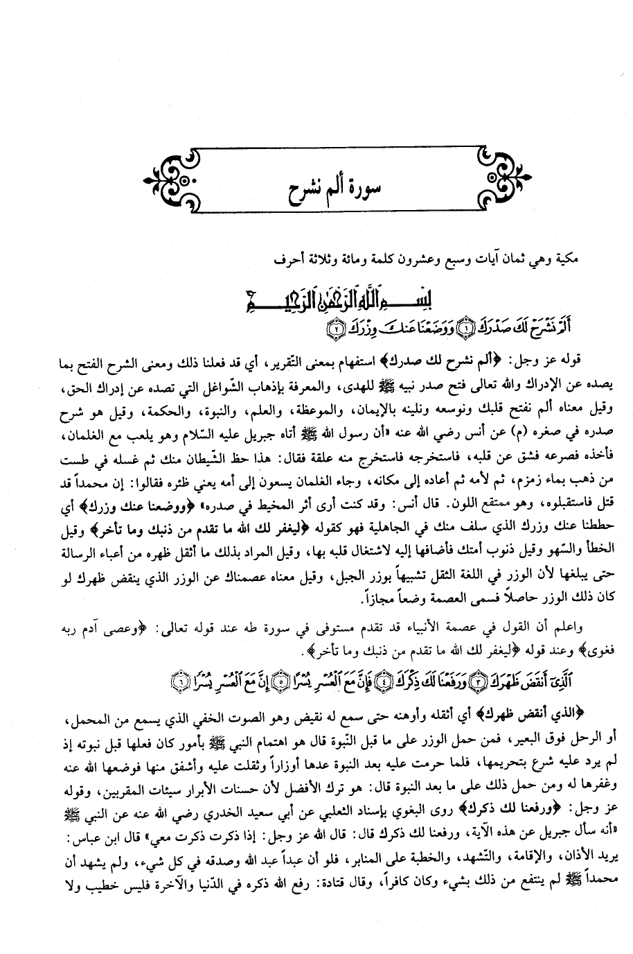 أَلَمْ نَشْرَحْ لَكَ صَدْرَكَ (1) وَوَضَعْنا عَنْكَ وِزْرَكَ (2)