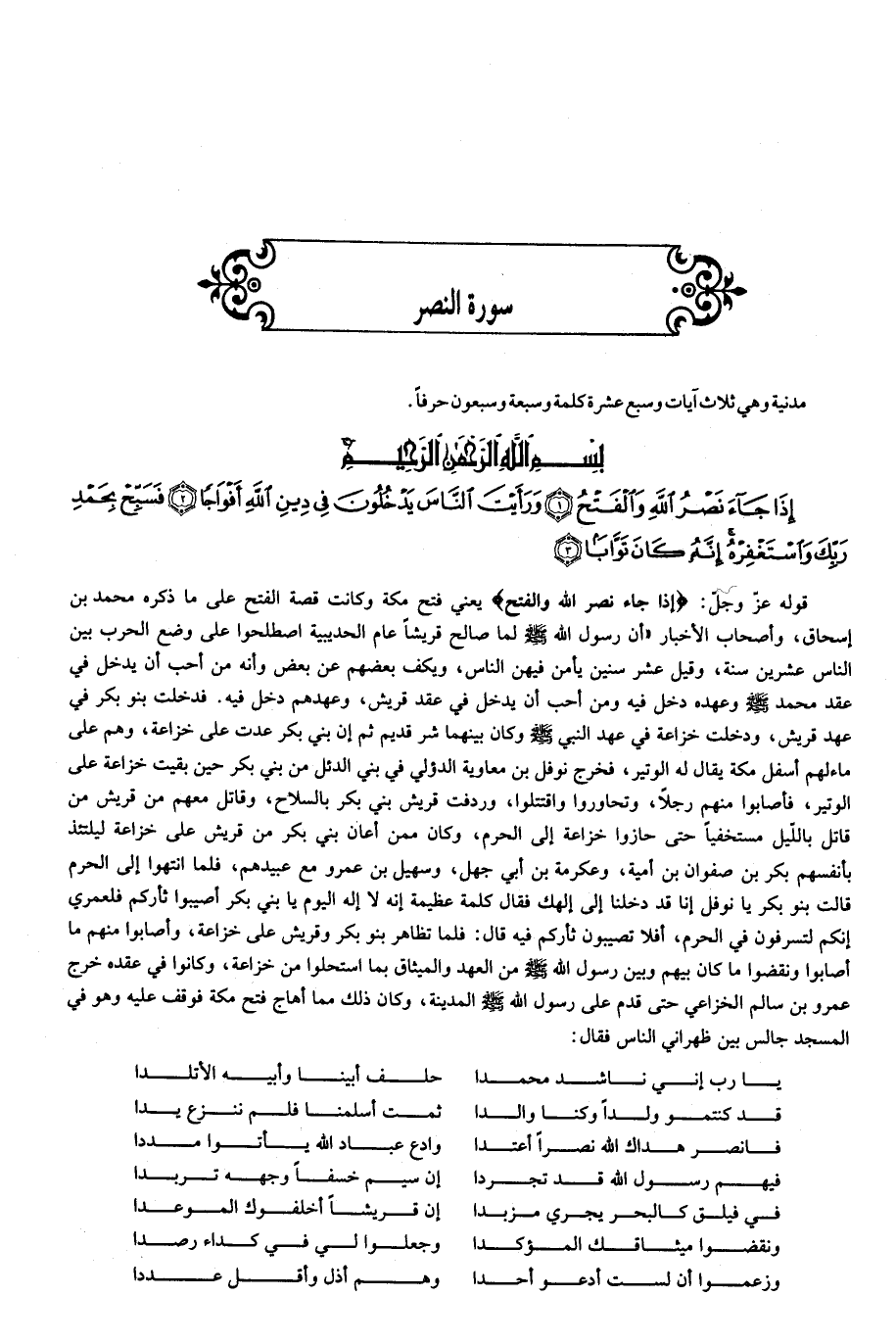 إِذا جاءَ نَصْرُ اللَّهِ وَالْفَتْحُ (1) وَرَأَيْتَ النَّاسَ يَدْخُلُونَ فِي دِينِ اللَّهِ أَفْواجاً (2) فَسَبِّحْ بِحَمْدِ رَبِّكَ وَاسْتَغْفِرْهُ إِنَّهُ كانَ تَوَّاباً (3)