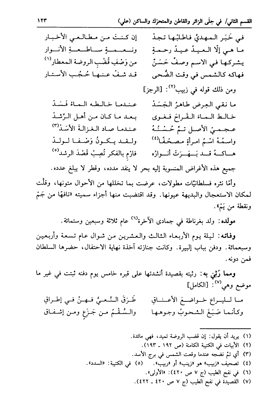 ومما رثي به: رثيته بقصيدة أنشدتها على قبره خامس يوم دفنه ثبتت في غير ما موضع وهي «7» : [الكامل]