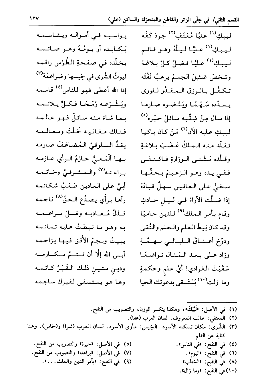 ليبك «1» عليّا معتف «2» جود كفّه ... يواسيه في أمواله ويقاسمه