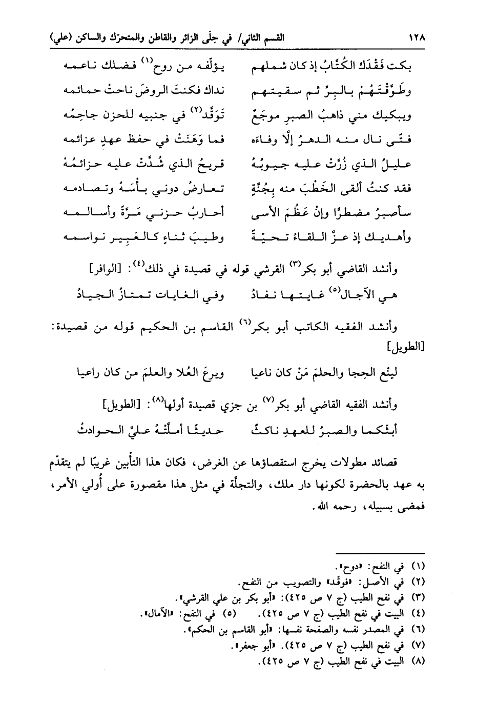 وأنشد القاضي أبو بكر «3» القرشي قوله في قصيدة في ذلك «4» : [الوافر]