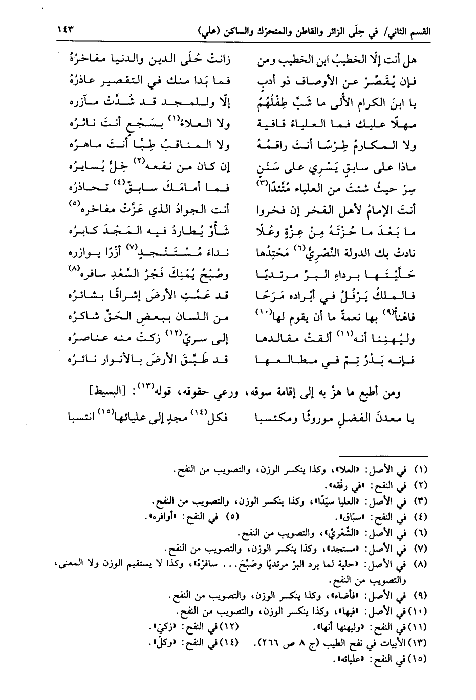 يا معدن الفضل موروثا ومكتسبا ... فكل «14» مجد إلى عليائها «15» انتسبا