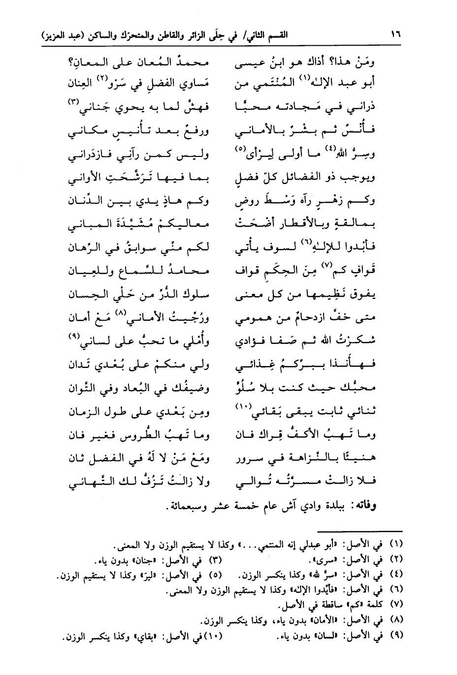 أبو عبد الإله «1» المنتمي من ... مساوي الفضل في سرو «2» العنان