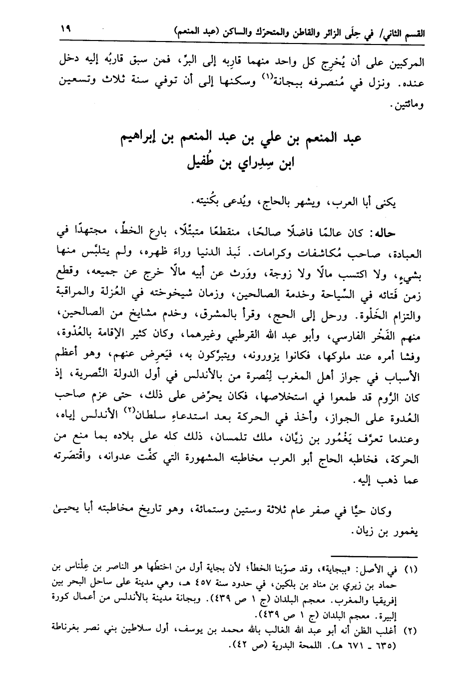 المركبين على أن يخرج كل واحد منهما قاربه إلى البرّ، فمن سبق قاربه إليه دخل عنده. ونزل في منصرفه ببجانة «1» وسكنها إلى أن توفي سنة ثلاث وتسعين ومائتين.
