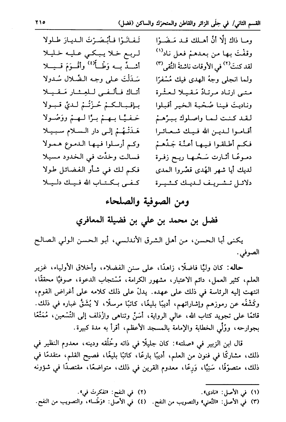 يكنى أبا الحسن، من أهل الشرق الأندلسي، أبو الحسن الولي الصالح الصوفي.