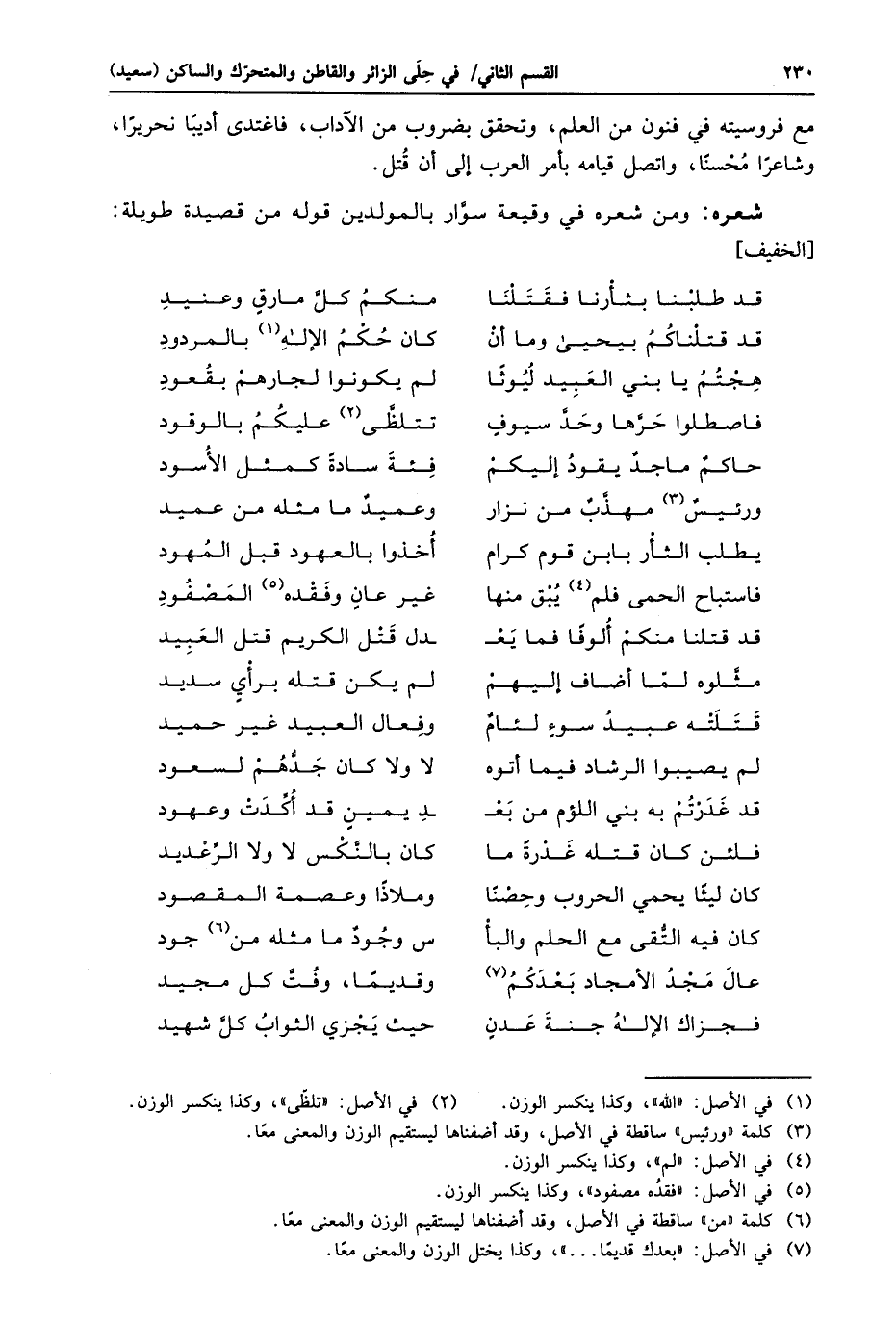 قد طلبنا بثأرنا فقتلنا ... منكم كلّ مارق وعنيد