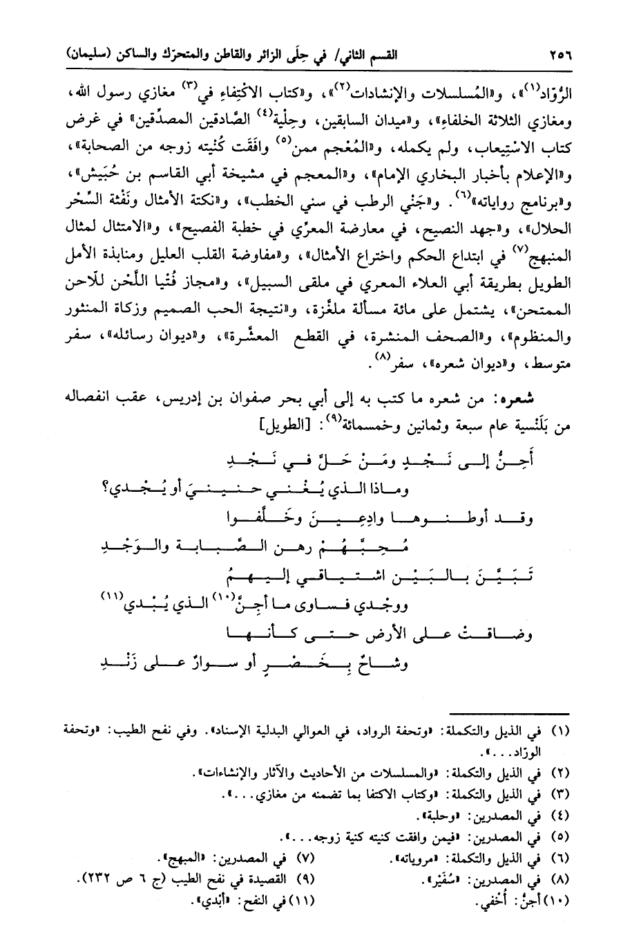 شعره: من شعره ما كتب به إلى أبي بحر صفوان بن إدريس، عقب انفصاله من بلنسية عام سبعة وثمانين وخمسمائة «9» : [الطويل]
