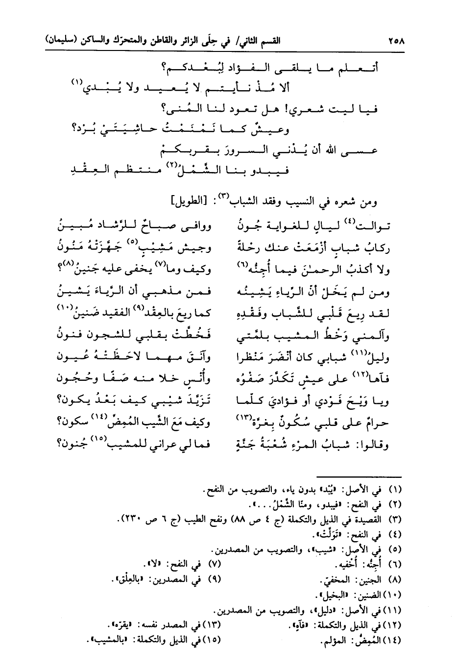 حرام على قلبي سكون بغرّة «13» ... وكيف مع الشّيب الممضّ «14» سكون؟