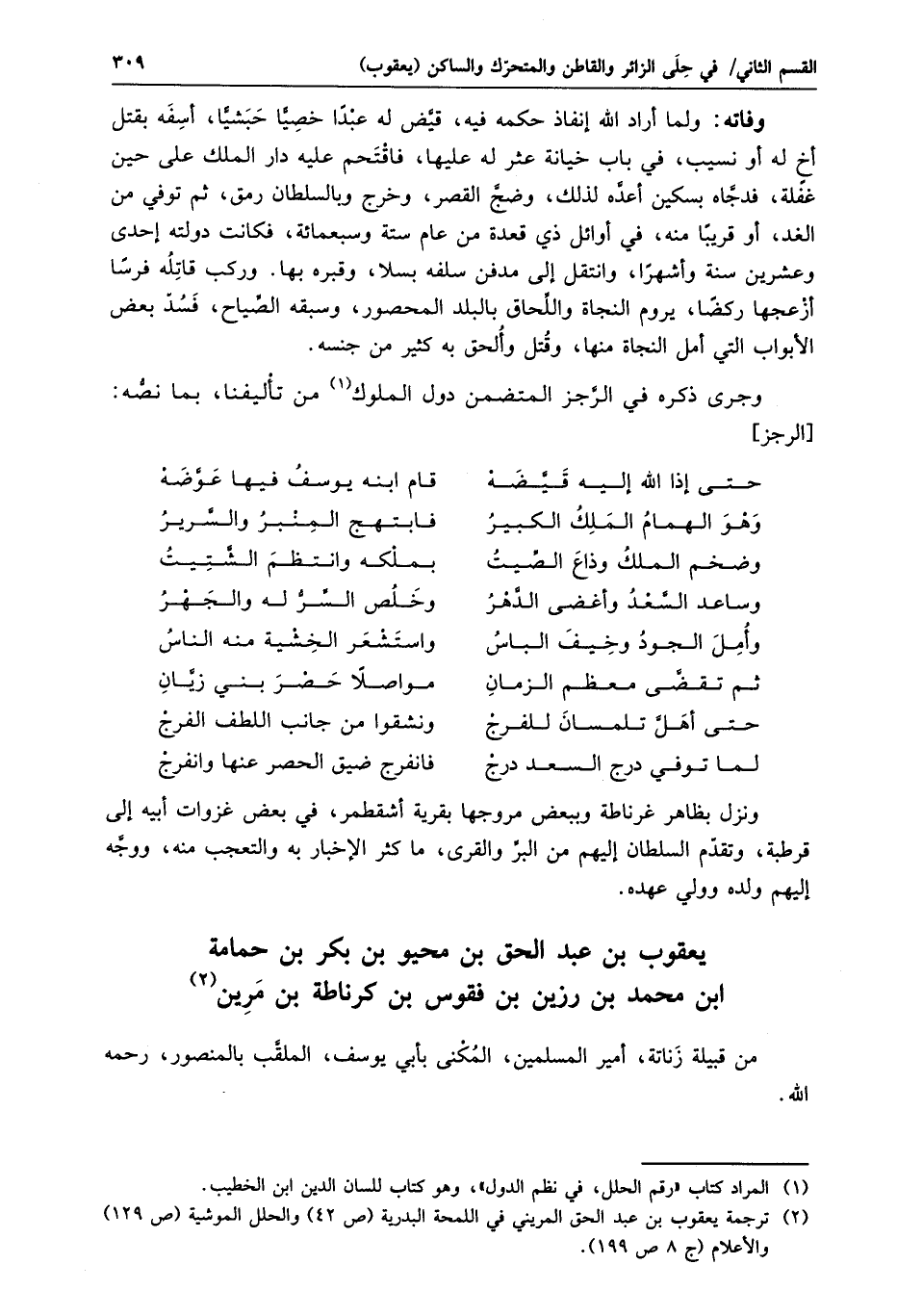 وجرى ذكره في الرّجز المتضمن دول الملوك «1» من تأليفنا، بما نصّه: