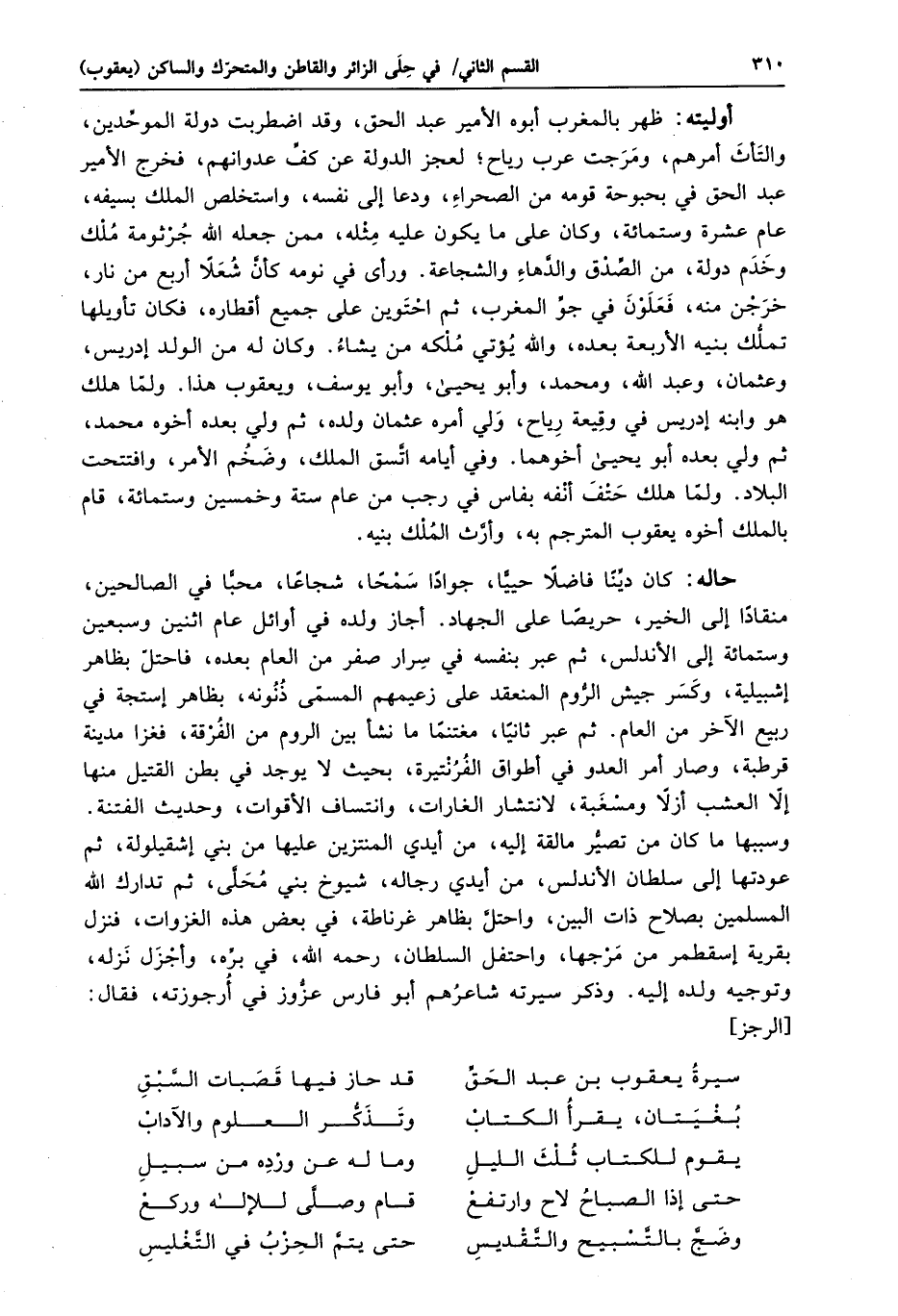 سيرة يعقوب بن عبد الحقّ ... قد حاز فيها قصبات السّبق