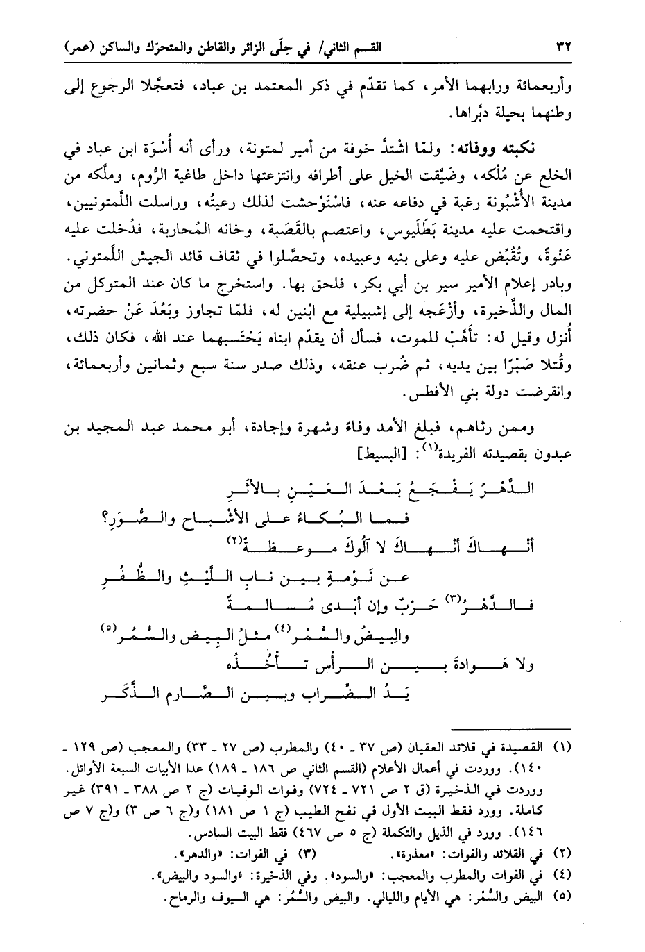 وممن رثاهم، فبلغ الأمد وفاء وشهرة وإجادة، أبو محمد عبد المجيد بن عبدون بقصيدته الفريدة «1» : [البسيط]