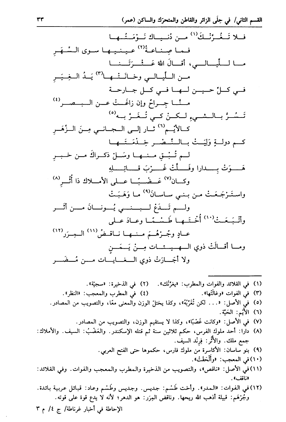 في كلّ حين لها في كل جارحة ... منّا جراح وإن زاغت عن البصر «4»