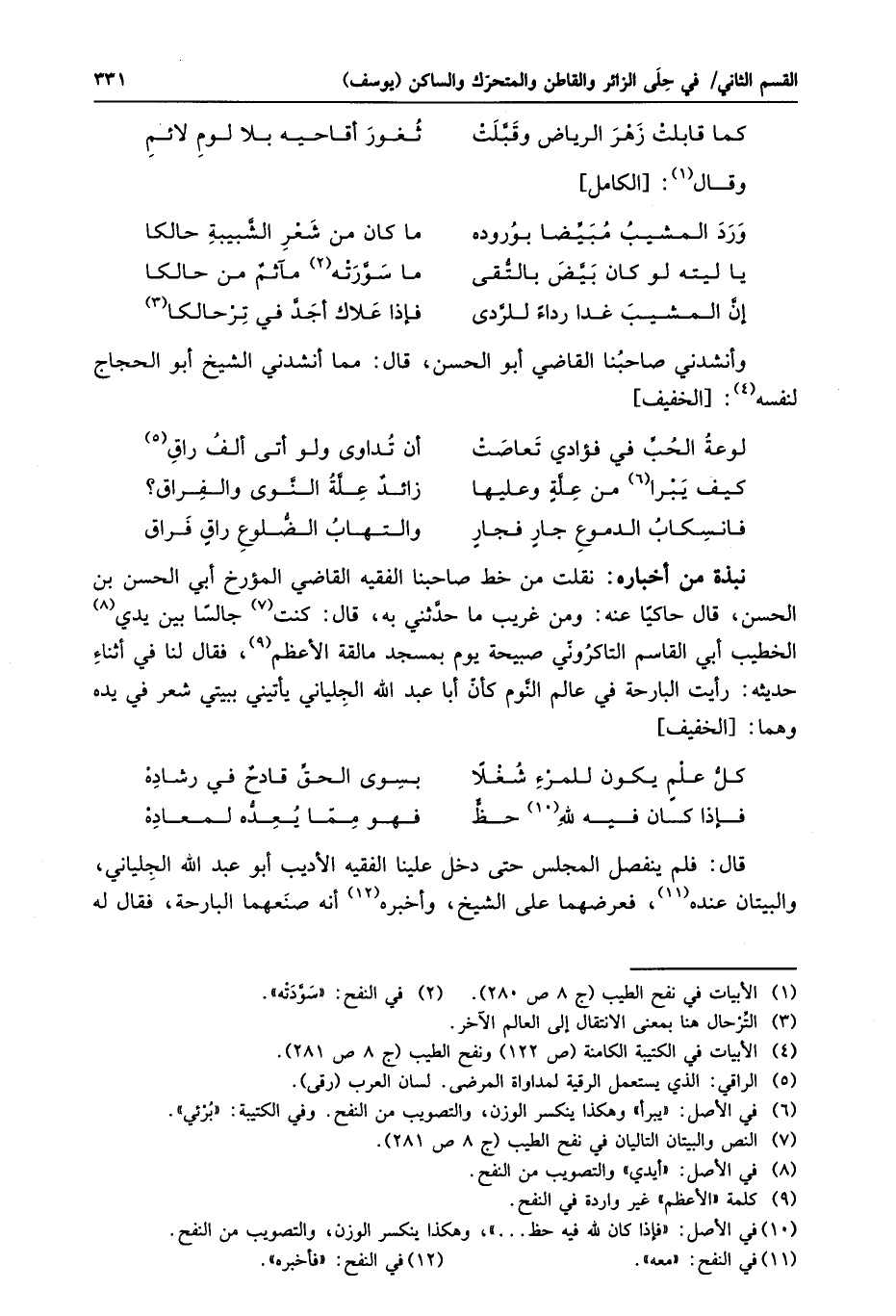 وأنشدني صاحبنا القاضي أبو الحسن، قال: مما أنشدني الشيخ أبو الحجاج لنفسه «4» : [الخفيف]