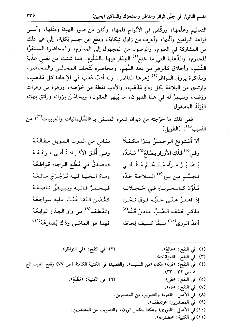 فمن ذلك ما خرّجته من ديوان شعره المسمّى ب «السّليمانيات والعربيات «3» » من النّسيب «4» : [الطويل]