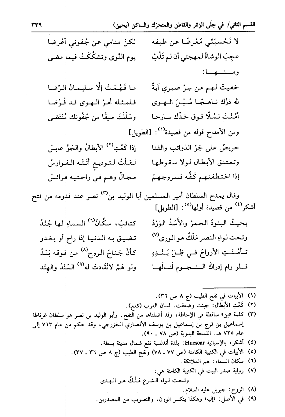 وقال يمدح السلطان أمير المسلمين أبا الوليد بن «3» نصر عند قدومه من فتح أشكر «4» من قصيدة أولها «5» : [الطويل]