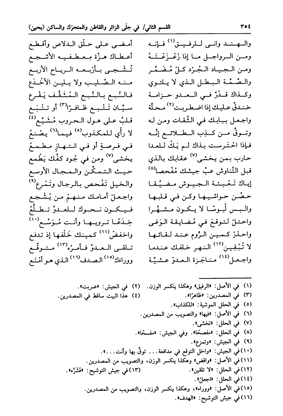 لا تبقين «13» النهر خلفك عندما ... تلقى العدوّ فأمره «14» متوقّع