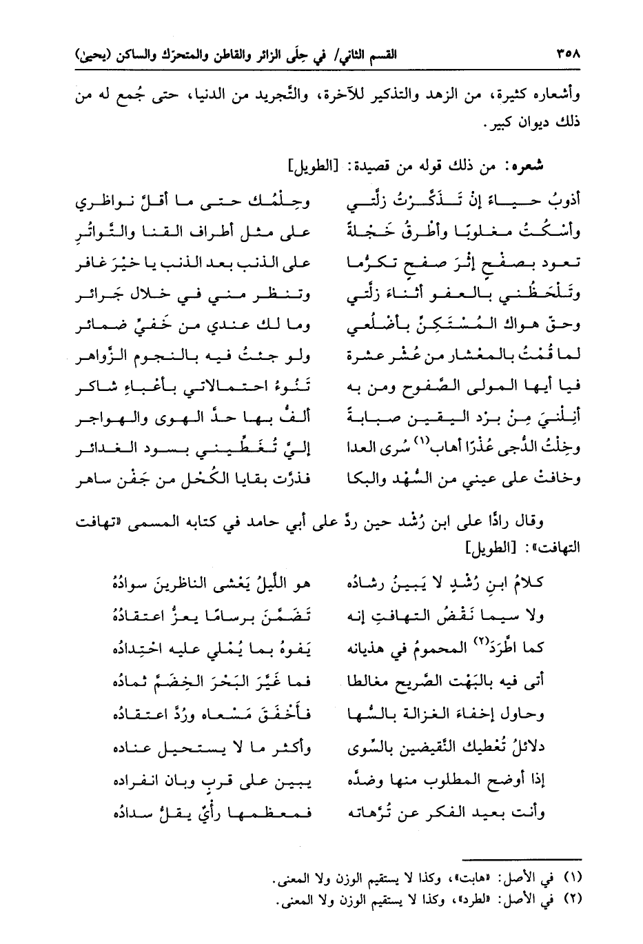 وقال رادّا على ابن رشد حين ردّ على أبي حامد في كتابه المسمى «تهافت التهافت» : [الطويل]