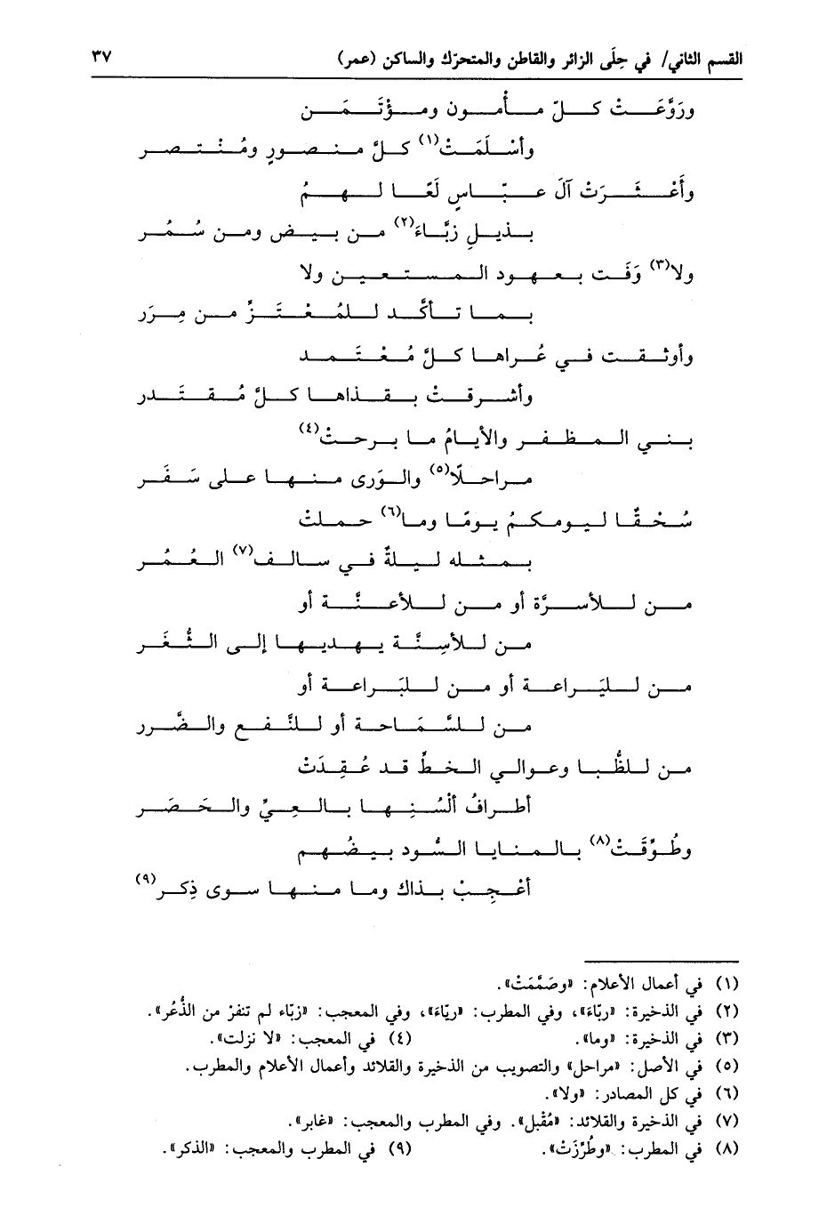 وطوّقت «8» بالمنايا السّود بيضهم ... أعجب بذاك وما منها سوى ذكر «9»