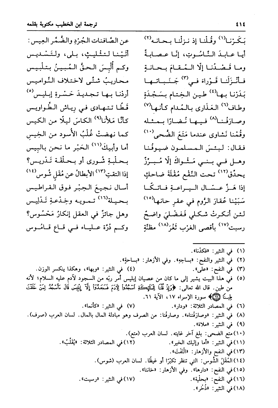 أيا عابد النّاسوت، إنّا عصابة ... أتينا لتثليث، بلى، ولتسديس