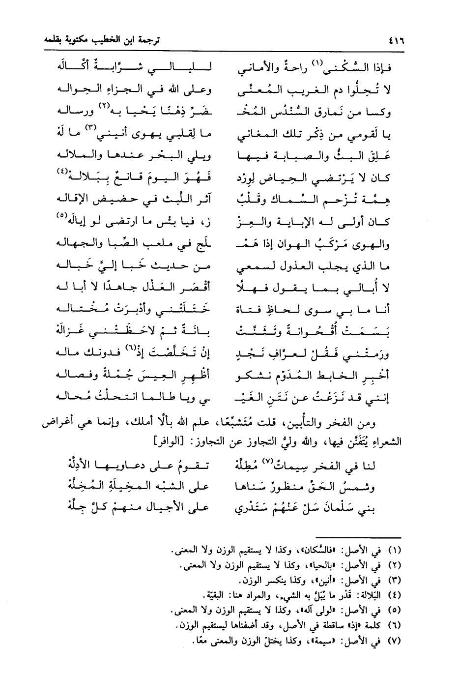 لنا في الفخر سيمات «7» مطلّة ... تقوم على دعاويها الأدلّة