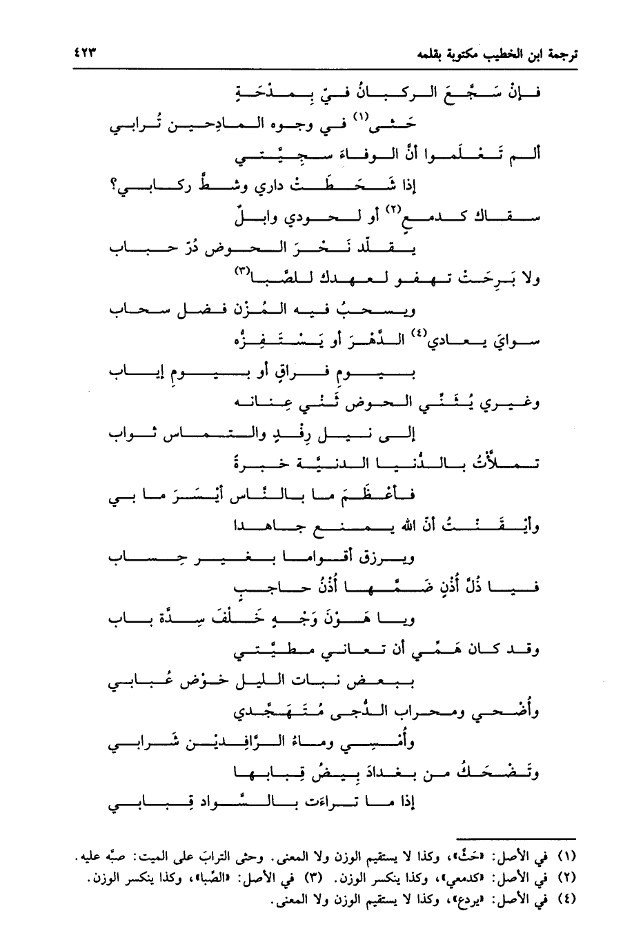 ألم تعلموا أنّ الوفاء سجيّتي ... إذا شحطت داري وشطّ ركابي؟