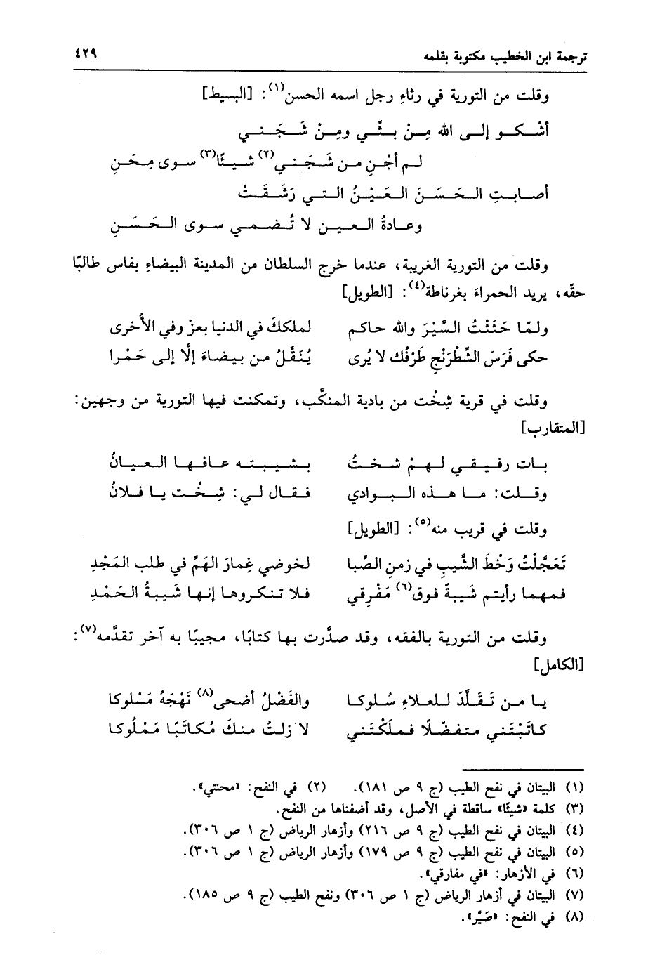 يا من تقلّد للعلاء سلوكا ... والفضل أضحى «8» نهجه مسلوكا