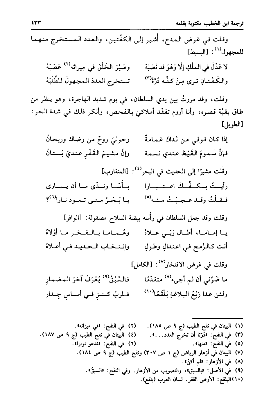 وقلت، وقد مررت بين يدي السلطان، في يوم شديد الهاجرة، وهو ينظر من طاق بقبّة قصره، وأنا أروم تفقّد أملاكي بالفحص، وأنكر ذلك في شدة الحر: