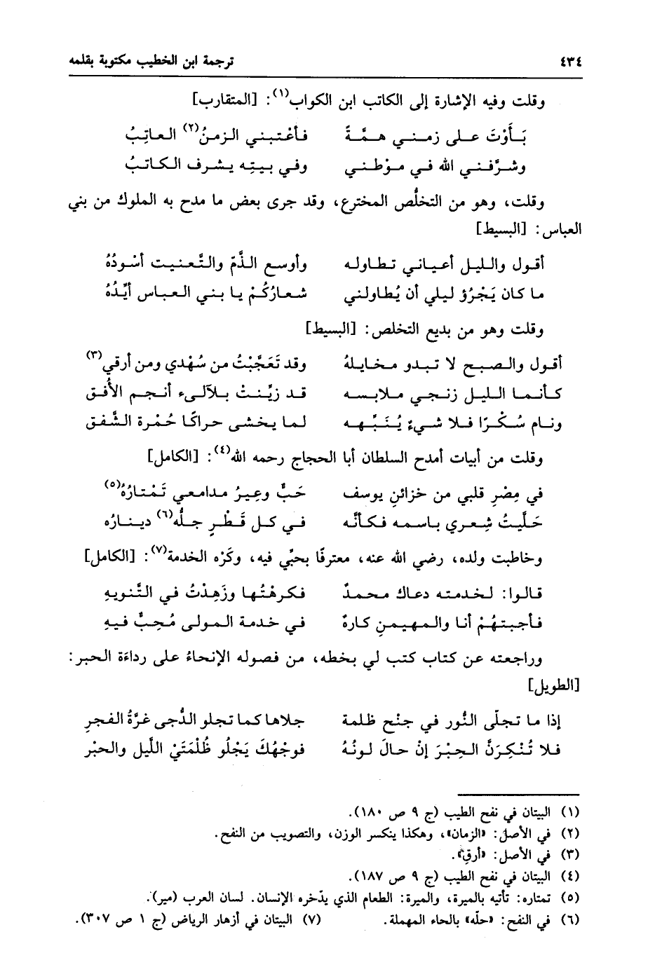 وقلت وفيه الإشارة إلى الكاتب ابن الكواب «1» : [المتقارب]