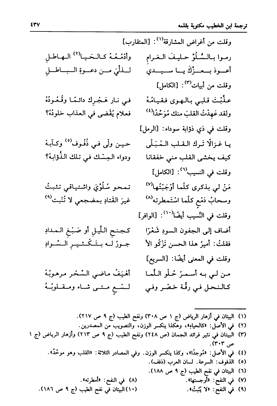 وقلت من أغراض المشارقة «1» : [المتقارب]