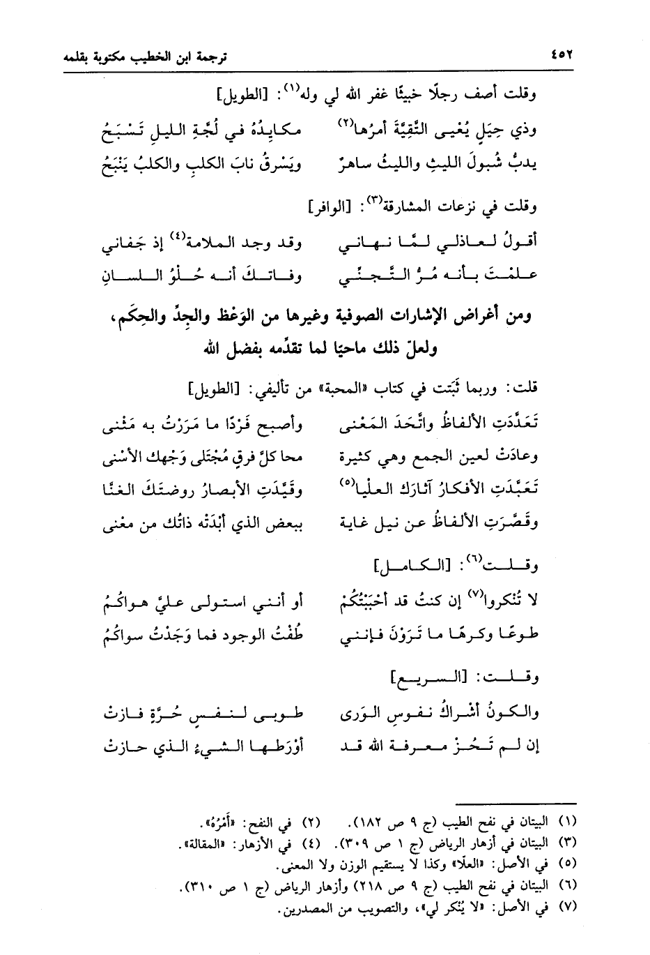 قلت: وربما ثبتت في كتاب «المحبة» من تأليفي: [الطويل]