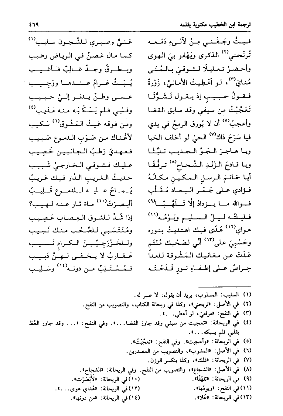 فبتّ وجفني من لآلىء دمعه ... غنيّ وصبري للشّجون سليب «1»