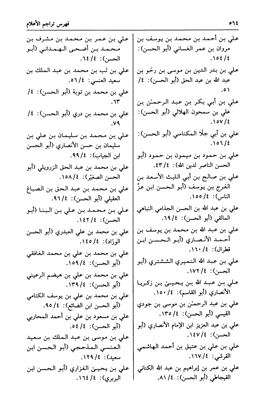 علي بن مسعود بن علي بن أحمد المحاربي (أبو الحسن) : 4/54.