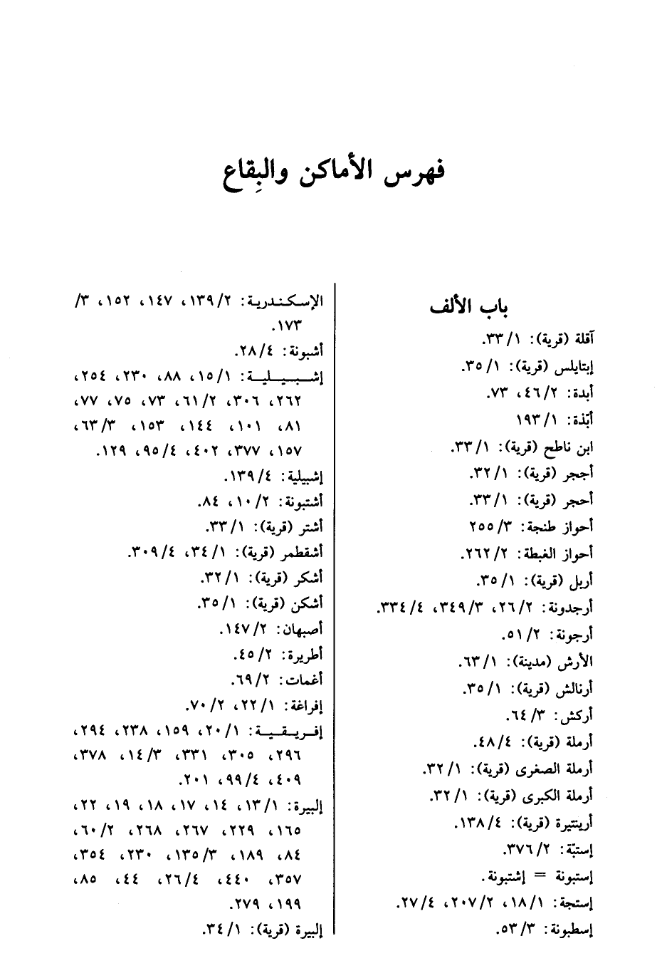 فهرس الأماكن والبقاع