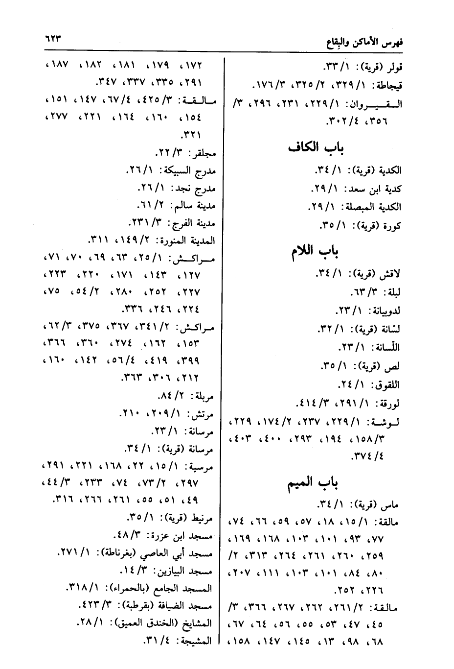 مراكش: 1/25، 63، 69، 70، 71، 127، 143، 171، 220، 223، 227، 252، 280، 2/54، 75، 224، 246، 336.