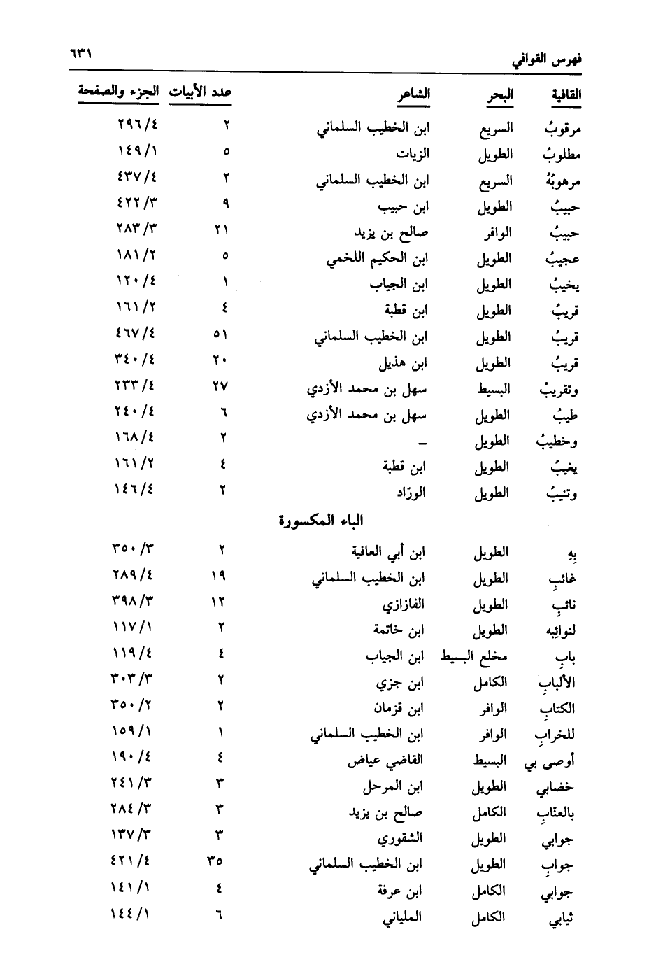 به: الطويل: ابن أبي العافية: 2: 3/350