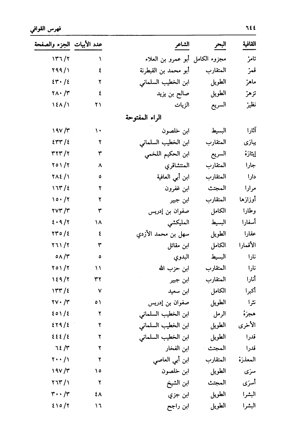 تامر: مجزوء الكامل أبو عمرو بن العلاء: 1: 2/136