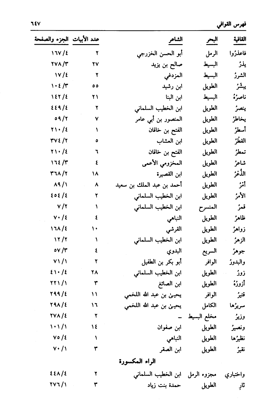 والبدور: الوافر: أبو بكر بن الطفيل: 2: 1/71