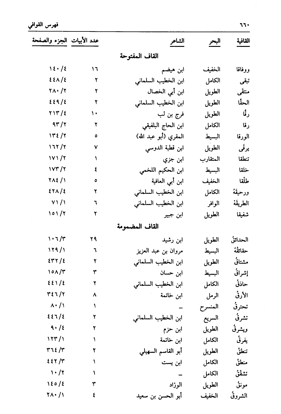 الطريقه: الوافر: ابن الخطيب السلماني: 6: 1/71