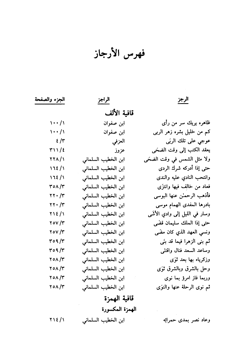 فهرس الأرجاز
