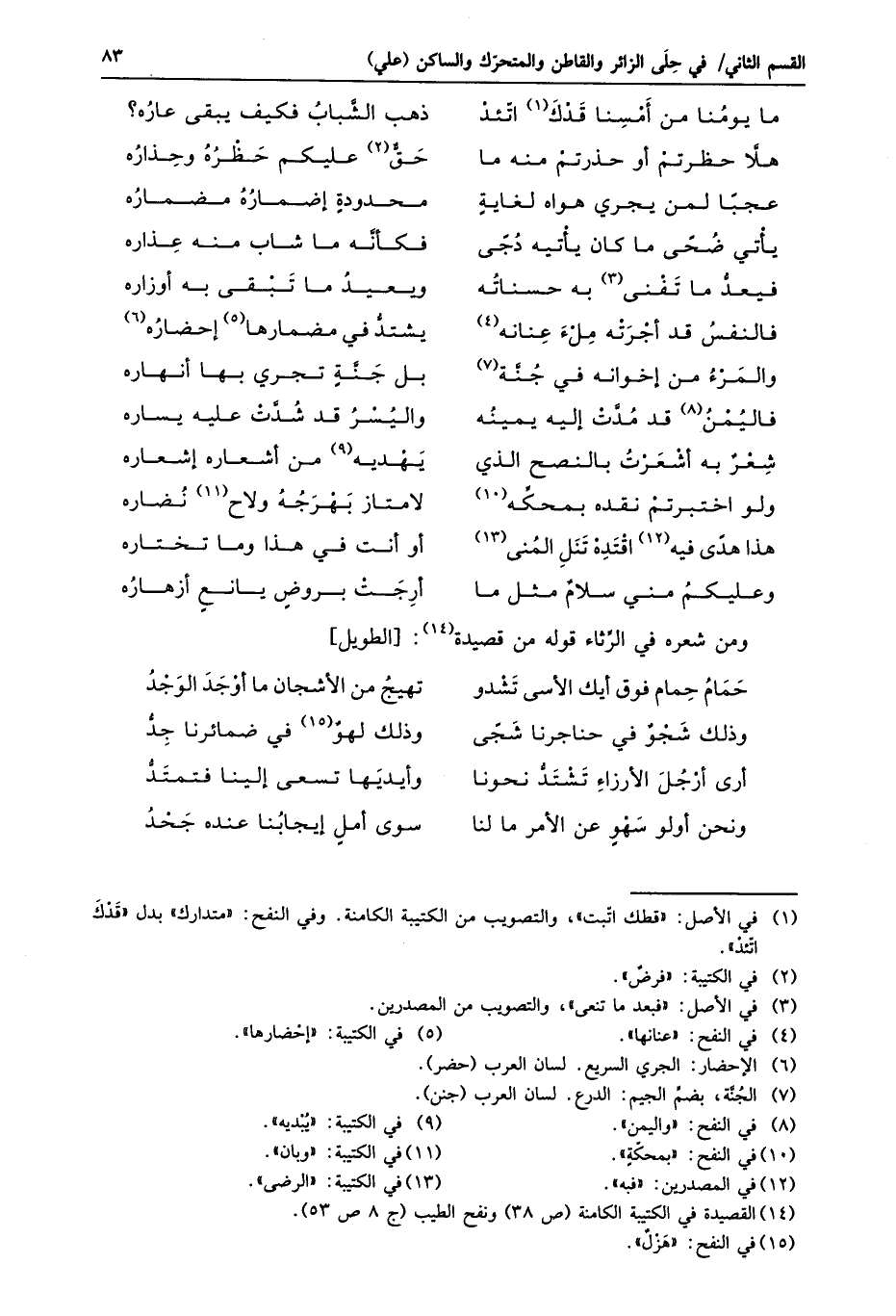 وذلك شجو في حناجرنا شجى ... وذلك لهو «15» في ضمائرنا جدّ
