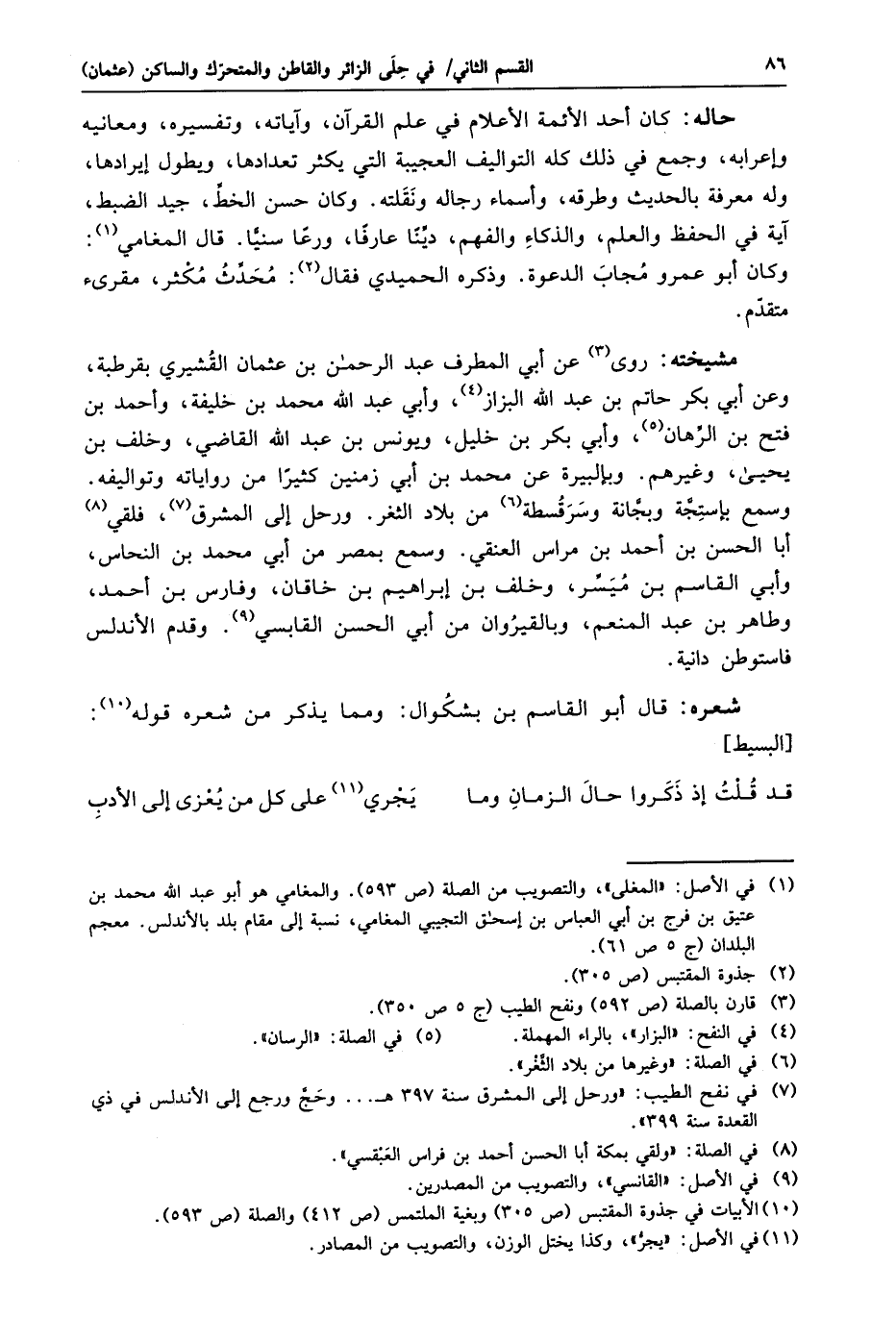 وسمع بأستجّة وبجّانة وسرقسطة «6» من بلاد الثغر. ورحل إلى المشرق «7» ، فلقي «8» أبا الحسن بن أحمد بن مراس العنقي. وسمع بمصر من أبي محمد بن النحاس، وأبي القاسم بن ميسّر، وخلف بن إبراهيم بن خاقان، وفارس بن أحمد، وطاهر بن عبد المنعم، وبالقيروان من أبي الحسن القابسي «9» . وقدم الأندلس فاستوطن دانية.