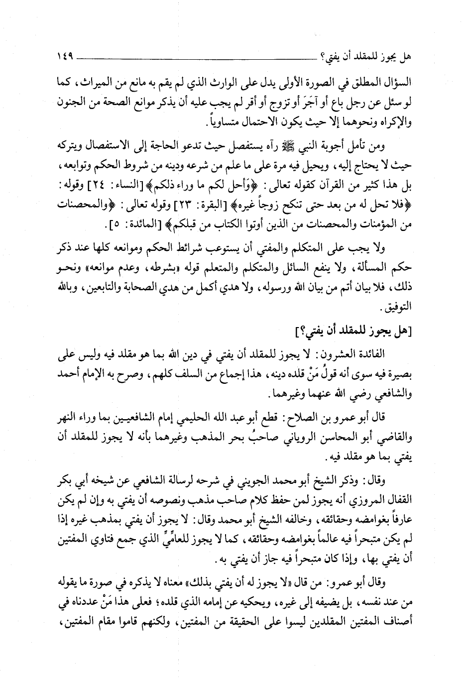 [هَلْ لِلْمُقَلِّدِ أَنْ يُفْتِيَ]